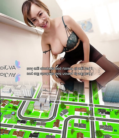 Nerdy Asian with glasses with a torrid butt no panties sharked