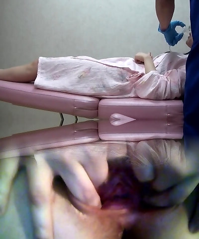 Spycam medical treatment for cute hairy fuckbox of Asian