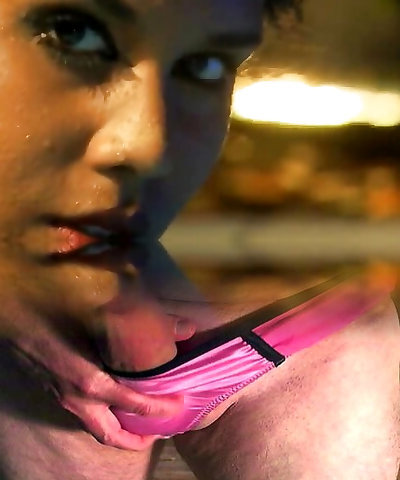 Teenie tight pussy in a short stretch pants with a big package to squeeze.