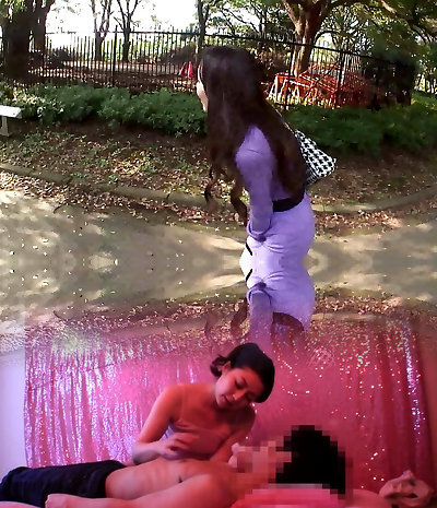 Asiatin haben Gruppensex im freien