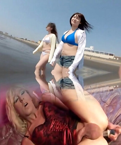 Incredible 3 Way at the Beach with Two Spectacular Japanese AV Models