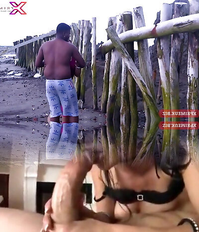 Japanese girlfriend Luna X gives a wonderful blowjob on the beach