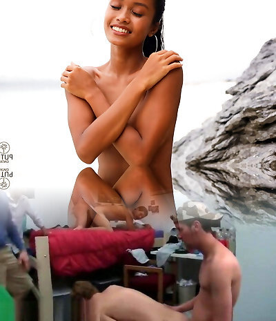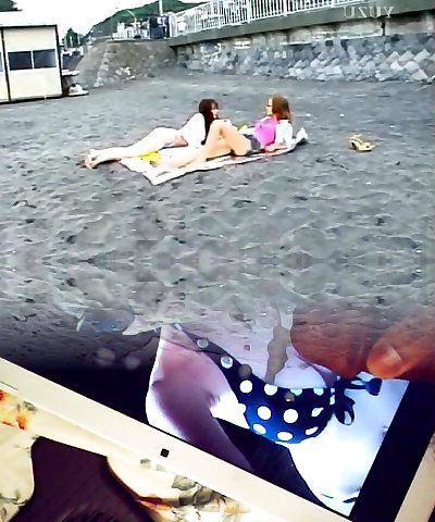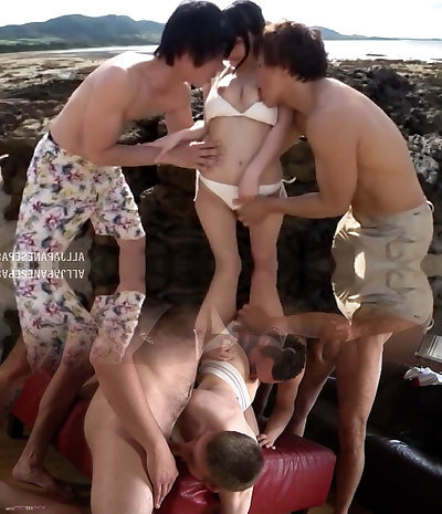 Sleazy youthfull Japanese mega-bitch in crimpal's bf swimsuit is about to have the wildest three-way of her life with two nasty fellows in an outdoor p