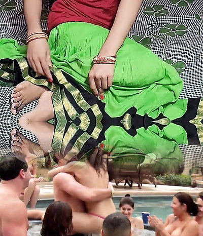 Asian Babe Putri Cinta fucking on the pool's edge with a huge hard-on.