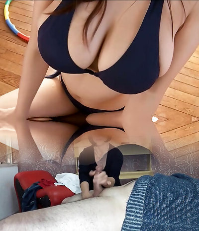 (Uncensored) Cum on globes after sloppy blowjob. meaty swimwear girl
