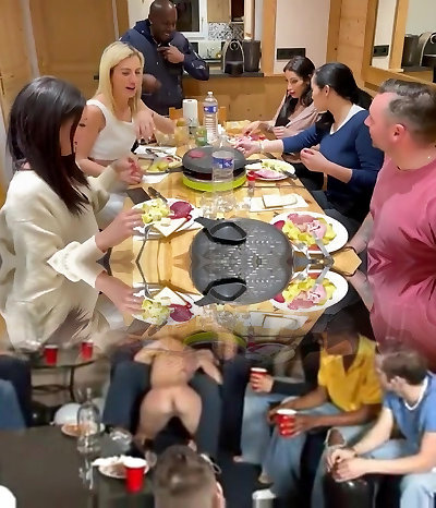 Cuckold ash-blonde wife lets her stepsister fuck her husband, they punish him with their pussies, he cums in their mouths. latin