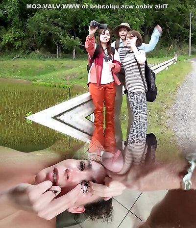 Double japanese duo in a hot sex excursion in the nature