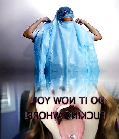 Cute Latex damsel on vacuum bag and mask, breathplay