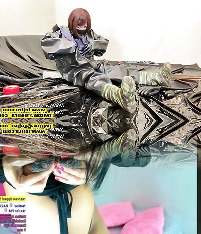 Fejira com Two vibros are fitted into mighty duty latex clothing for masturbation