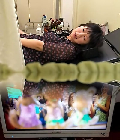 Rie Takasaka has her fur covered slit fucked with wand at medical