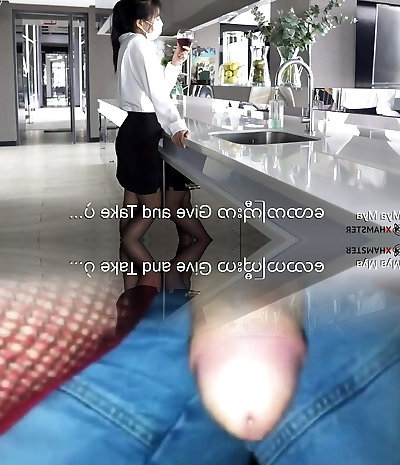 Japanese secretary shows her bushy vagina and bj's colleague's manhood